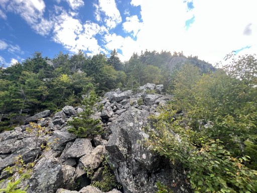 Right before the top there’s a rockslide that we climb up. It was the first time since Katahdin that we’ve had to stow away our trekking poles to scramble up. The pictures don’t give the steepness justice.