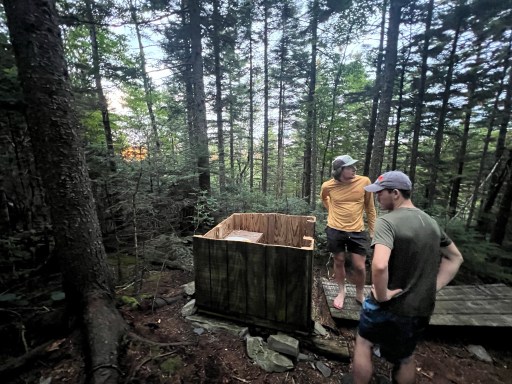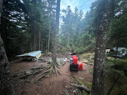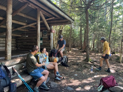 Our shelter tonight’s just .5 miles from Chairback’s peak. It’s nested in a valley between Chairback and Columbus Mountain, which we’ll climb tomorrow morning. There’s a spring in the middle of the trail that’s hardly flowing but the water is cool and clear. It takes some patience to collect.