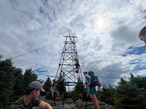 One of the last mountains in the 100MW is Barren Mountain and on top is what’s left of a decaying fire tower. You’re still able to climb up the ladder for a good view. A lab/bernese mix dog that thru hiked nobo last year came up the trail, he was very friendly. Here I also met another sobo thru hiker but I can’t recall his name.