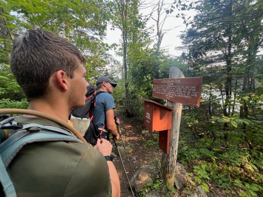 We passed the 100 mile wilderness sign today and Noah took our picture.