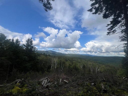 The rain paused this afternoon and the sun came out an enough to clear the fog. I took a break at a view of the Saddleback range. This view was made possible by cutting down a portion of the forest, it was not being logged. A nobo walked around the corner and we talked briefly. He mentioned there’s a canoe (with paddles and life jackets) at the campsite I’m staying at tonight. This gave me a little pickup.