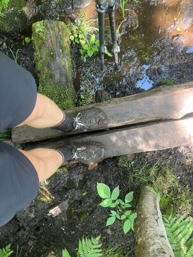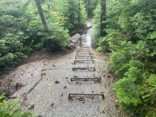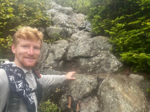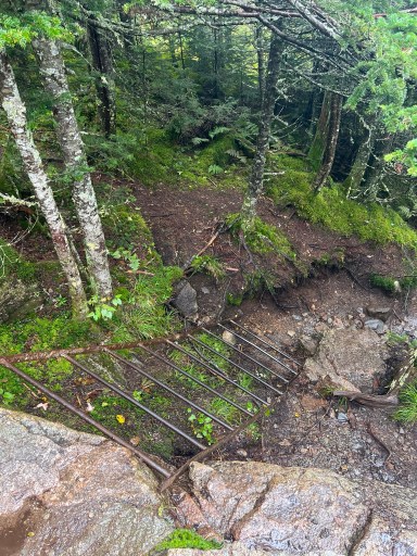 Once down from Saddleback I ate a later lunch at Piazza Rock Lean-to. There was a couple (from Massachusetts) doing a section hike that I talked with while I ate. I filtered some water and went on my way. A small descent brought me to some bog boards. That I unfortunately slipped off and straddled the bog board sitting down. Luckily it wasn’t too deep but it did coat my shoes in a nice layer of mud.