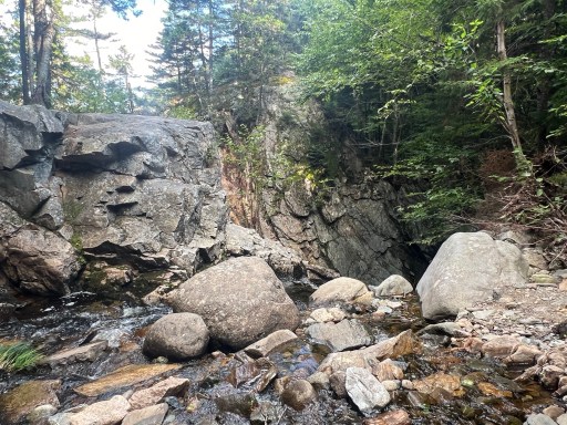 I went up and over an unnamed mountain then descended into Sawyers Notch. There was a tall waterfall in the Notch that was pretty neat. The fog cleared up and the sun came out shining for try first time in a few days. I’m looking forward to sleeping when everything’s not damp.