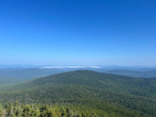 The peak had 360 views on a clear day like today. I wanna say I could see mt. Washington or one of the tall mountains in the Whites but not 100% sure