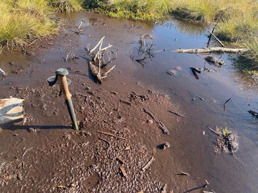 A sort distance away is Baldpate West Peak. I dipped into a valley where there was a small bog with some bog boards. I pushed my pole into one of them and it barely hit the bottom. I couldn’t imagine falling into that…
