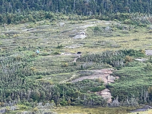 I passed the gentleman and his dog that hiked through the Notch last year. He said his dog had to get stitch up on his belly after the hike. I could see them in the distance crossing a bog board as I climbed up Goose Eye East Peak.