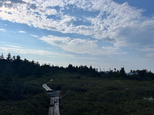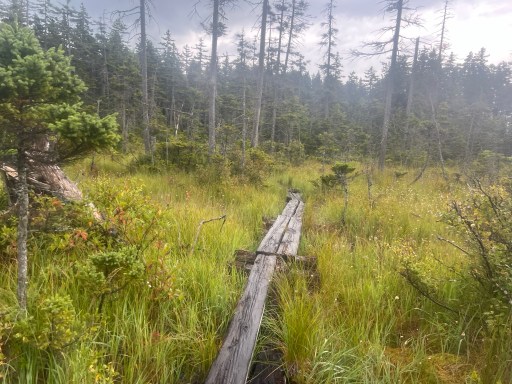 There were tons of bog boards today. There were a few that appeared to be walkable but were floating and would sink into the bog if you stepped in them. My trekking poles really came in handy in these sections. I would trudge along poking at each board before I walked across.