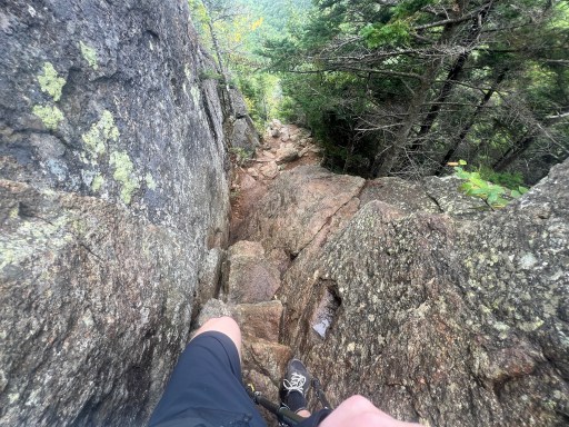 I started my big descent down to the Pinkham Notch. It was super steep and the rocks were wet so I took it very slow. There were some sketchy parts but I made it down safely. (I later found out that this is the steepest down on the AT)