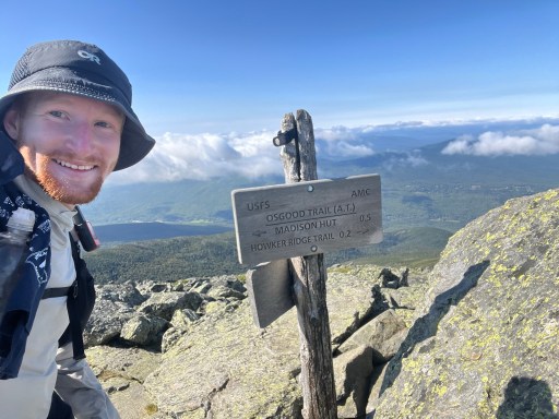 The few miles after the visitor center were fairly cruzy. There was a larger climb and descent but the grade wasn’t bad. I filled my bottles at a stream right before Osgood Tentsite. This is the last reliable water source before I go 3000ft up Madison. The climb is pretty steep and has lots of rocks. Luckily by this time of the day the sun was out and the surface of the rocks had dried out.