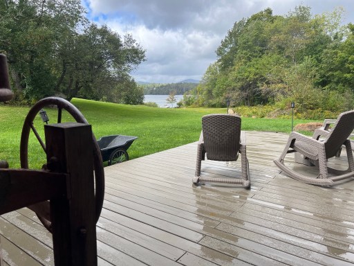 As it drew closer to lunch I crossed a bunch of roads and parking areas for Thundering Falls, a large waterfall. Once again. No picture… but there was a nice board walk for a quarter mile that I enjoyed. About a mile past the waterfall is where I had seen the mark for the lodges where I may be able to charge my phone. It should be near Kent pond. I crossed another road and saw the pond so I decided to peak around the turn on the road and sure enough there was a lodge. The restaurant attached was closed for the time being but they had an open patio with outlets that I charged up at and ate lunch.