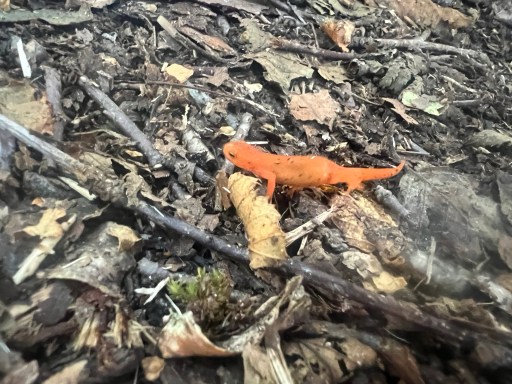 I hesitated when I stepped because I saw a bright orange spec on the ground. It turned out to be a super small newt no bigger than a dime. I’ve seen them before on other trails but this is the first one I’ve seen on the AT.