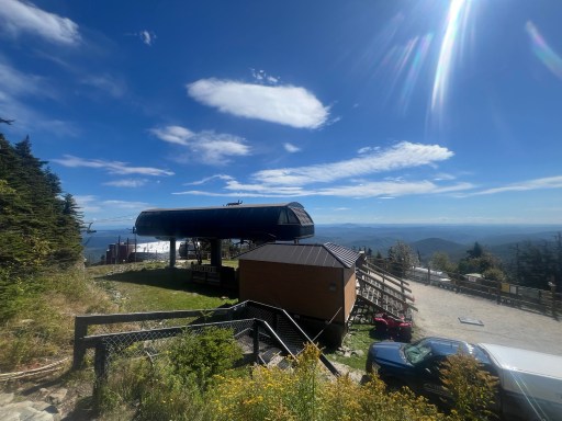 The views (featured image) were the best I’ve had since Moosilauke. Otherwise there’s not much at the top. Just some weather instruments. I could hear the gondola running as I walked a bit down. There’s a lodge at the top that’s sometimes open but not today. There’s plenty of seating outside and I decided to eat lunch there. A few people that came up the gondola were checking out the peak. A couple of mountain bikers also rolled by.