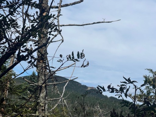 I had to hike the steep .2 back down to the shelter where the trail continues. The AT coincides with the Long trail here for a while so I’ve seen a few hikers thru hiking that throughout the day. The descent after the .2 wasn’t bad at all. After a mile or two I was able to see the peak again in a little window between the trees.