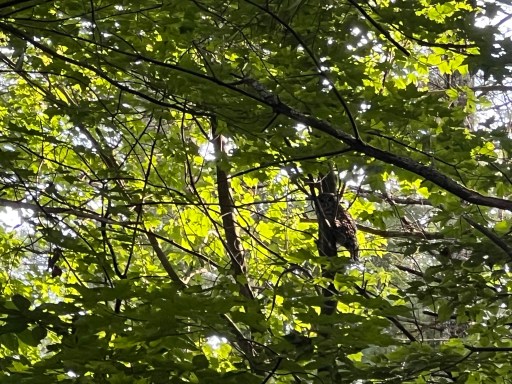 As I was cooking dinner I saw a glimpse of what seemed like an owl fly by in the distance and land on a tree. I walked closer and there he was perched on a branch.