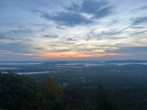 I began hiking with my headlamp. I wouldn’t need it very long as the sun was about to rise. Luckily the trail was clear of tripping hazards and very flat. I realized that there was a view coming up about two miles ahead and if I keep the pace I would get there just before sunrise.