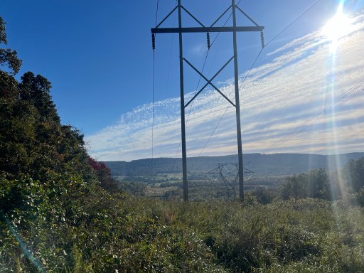 I took daytime picture of the WV/VA boarder sign then hiked on. Otherwise the 3.4 miles went by pretty fast. Only passed some power lines with a little view on either side.