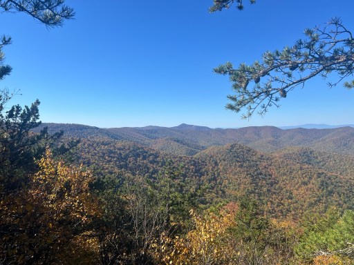 I climbed over Weaver mountain. It’s got a wooded summit so no views. There was in fact a view shortly after at Ivy Creek Overlook. There were a couple of cars parked here and people taking social media pictures.
