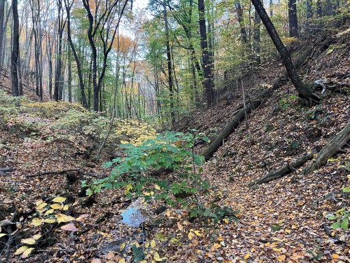 Near the bottom I passed Wilson Creek and a sign. The sign marked an old Charcoal pit prior to its closing due to new fuel methods.