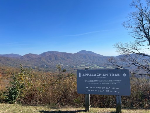 The following was Peaks of Otter Overlook. It was great views of the south east and a sign describing the Appalachian Trail.