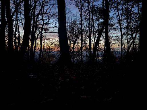 The cool thing about this shelter is the water source. It’s a cistern that collects rainfall from the roof of the shelter. It still had water for which I was grateful for. I pitched my tent 100yards behind the shelter. It’s a little less windy here as it’s not at the tippy top. Nice view of the sunset through the trees.