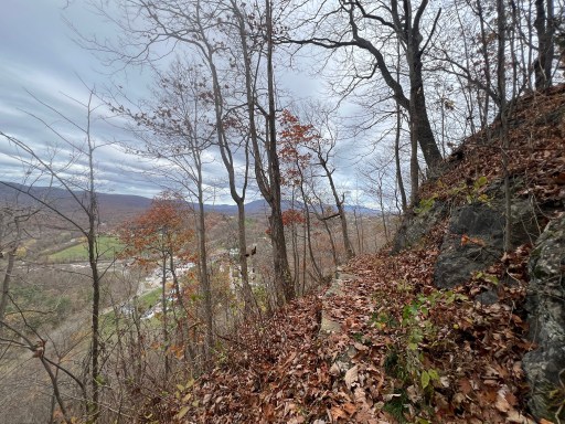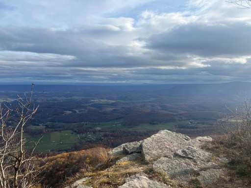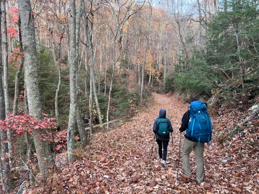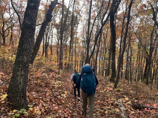 The descent is gradual back to Pearisburg. Unfortunately my dad twisted his ankle a mile or two into the hike. We’re walking on medium sized gravel with the occasional rock poking up out of the leaves. It makes it difficult to see what your foot’s going to land on.