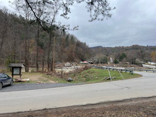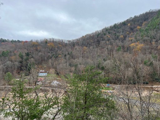 I got to the Erwin around 1pm. The last mile I was walking along the side of the mountain above the Nolichucky River. This river flooded and reeked havoc during Helene. The river rock was everywhere and dump trucks were actively speeding down the newly constructed gravel road moving earth.