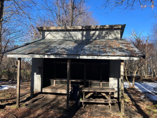 I took a snack break at Bald Mountain Shelter before the last push up to Big Bald. I searched for a logbook and didn’t find one. I’ve been checking them all the past few days to see if anyone’s been through recently. Most of them have little or no comments since the end of September when Helene hit.