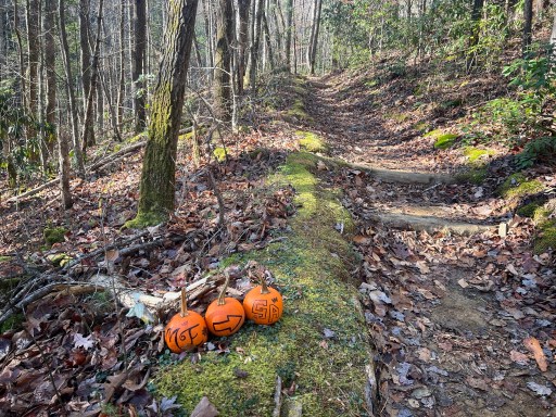 First section was a 700ft climb up to Davenport Gap. It’s easier to break the climb down into segments so it’s not overwhelming. Had some tree obstructed views on my way there. Davenport Gap is the AT’s entrance (or exit for most) to the Smokies! There were some silly pumpkins on the side of the trail reading “ME —> GA” in spooky lettering.