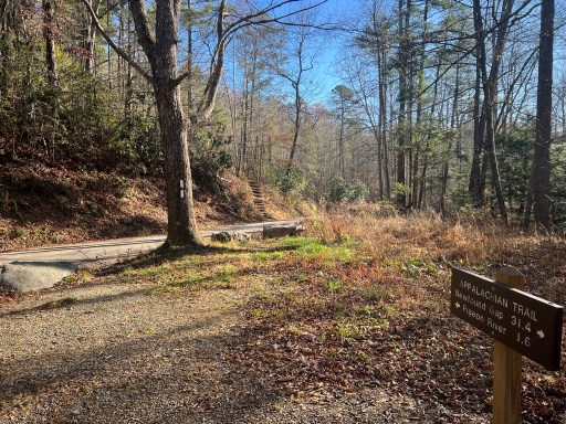 Went back to the treehouse and packed up my bag. It’s pretty heavy with all this food. I also probably have the better part of a half pound of hand warmers. Pack on and linens in the hamper I made the .2 mile trek back to the AT.