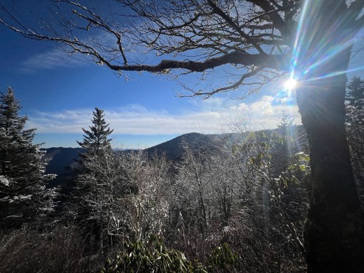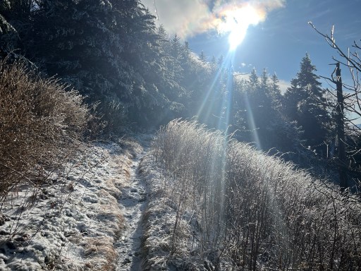 After lunch, I had a small chunk of the climb left before I descended down to Low Gap. The sun was shining brightly and casting rays of light that glimmered in the snow.