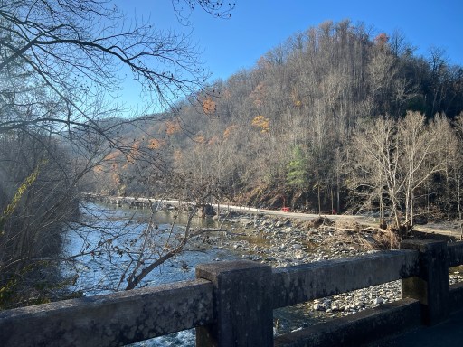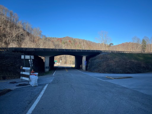 Had a short climb before I went down to interstate 40. There were no cars at all – kinda creepy. Right after, I walked over the Pigeon River and reentered the woods.