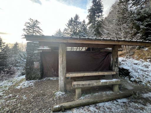 The shelter is massive and has a tarp to block some of the breeze which is super nice. The sleeping platforms are quite slanted and the bottom platform is like 2 ft high. I decided to take the top and will be facing the back of the shelter because it slopes that way. Want my head higher than my feet while I sleep.