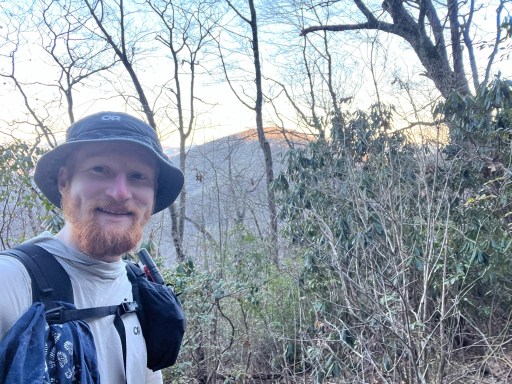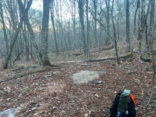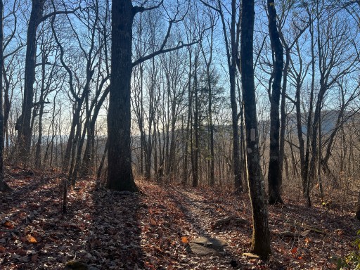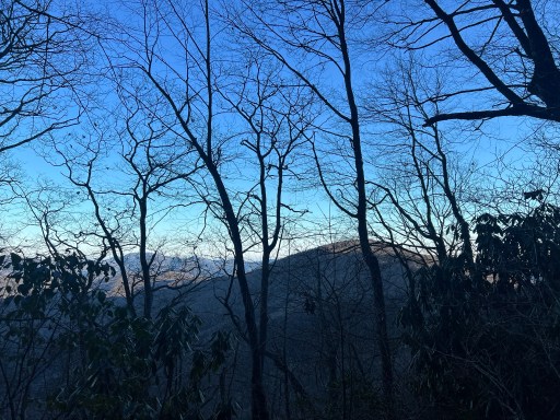 There were no clear views along the bump but I could make them out through the trees. Right before I reached Rock Gap I stopped at a stream to filter some water. I walked 50 yards down the trail after filtering water and ran into a blowdown. This one seemed more recent than Helene and there was no evidence of people getting through. Still carrying my handsaw a spent a few minutes clearing a path through it.