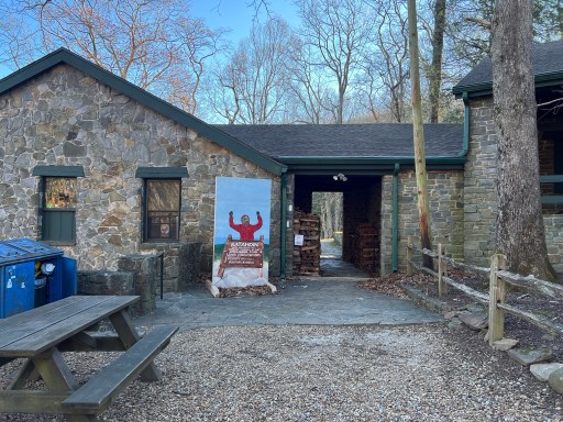 When I arrived at Neels Gap I walked through the tunnel, the official trail route. On the other side there was a large Katahdin Photo Booth and lots of seating.