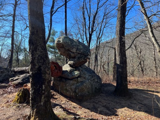 After two hours I hit the trail again. It was 11:30 when I started my ascent towards Blood Mountain. I was glad to see that the wind had died down and it had warmed up quite a bit! As I made my way up there was this interesting balancing rock. Looks as if you could just push it over.
